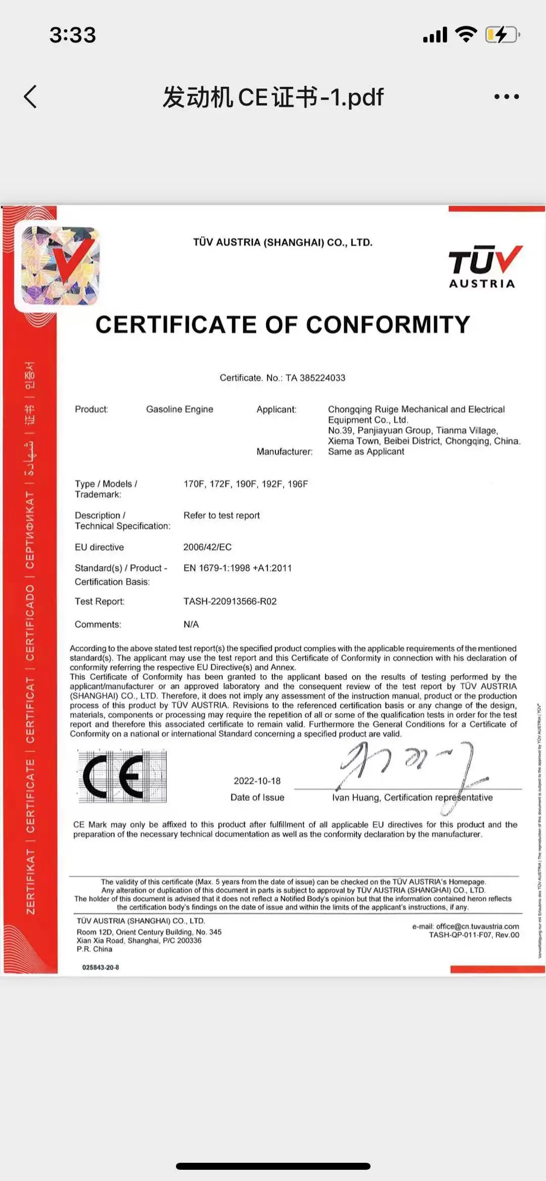 - Special Features: Low fuel consumption, low operating temperature, high performance