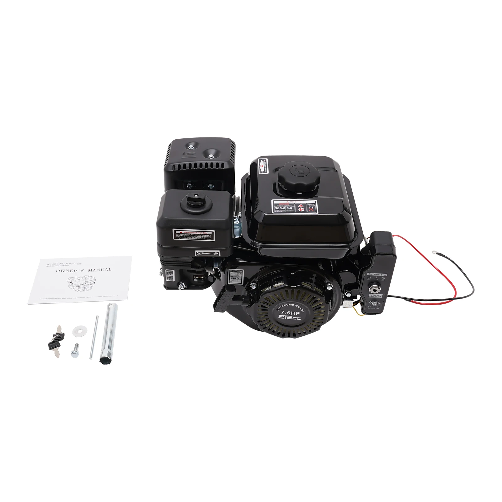 The gasoline engine boasts a robust 7.5HP horsepower, a displacement of 210cc and a rotating speed of 3600RPM, which provides you with strong power. The engine has a large fuel tank capacity of 0.95 gallon. It is widely used in can be applied to go-karts, compressors, trenchers, generators, high-pressure washers, cement mixers, etc.