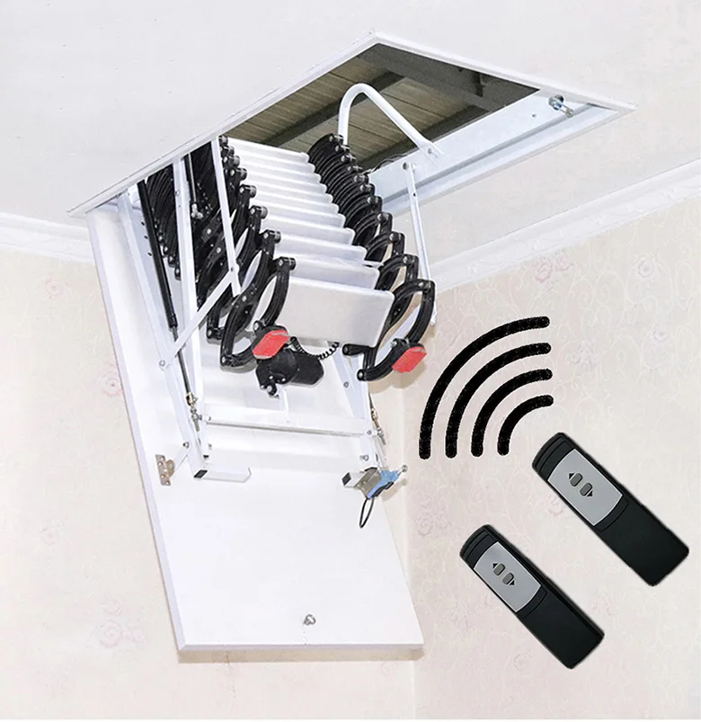 Electric attic stairs with handrails remote control ceiling folding telescopic ladder with hatch