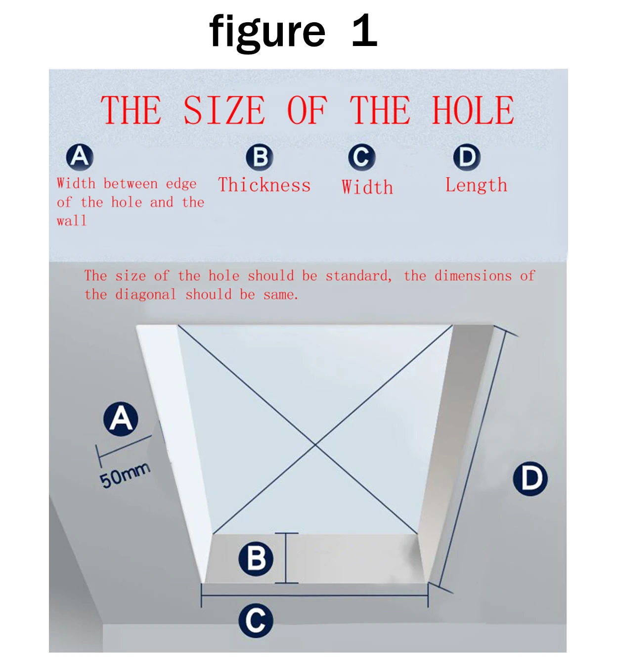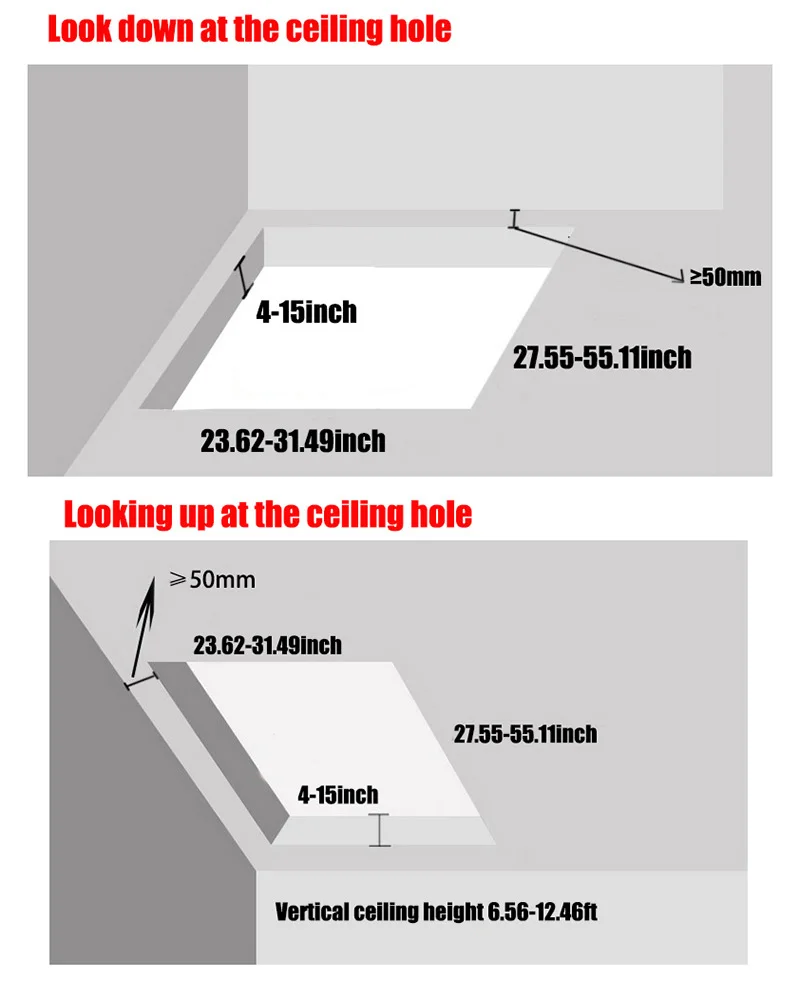The ceiling hole width must not be less than 60cm/23.62inch and not greater than 80cm/31.49inch