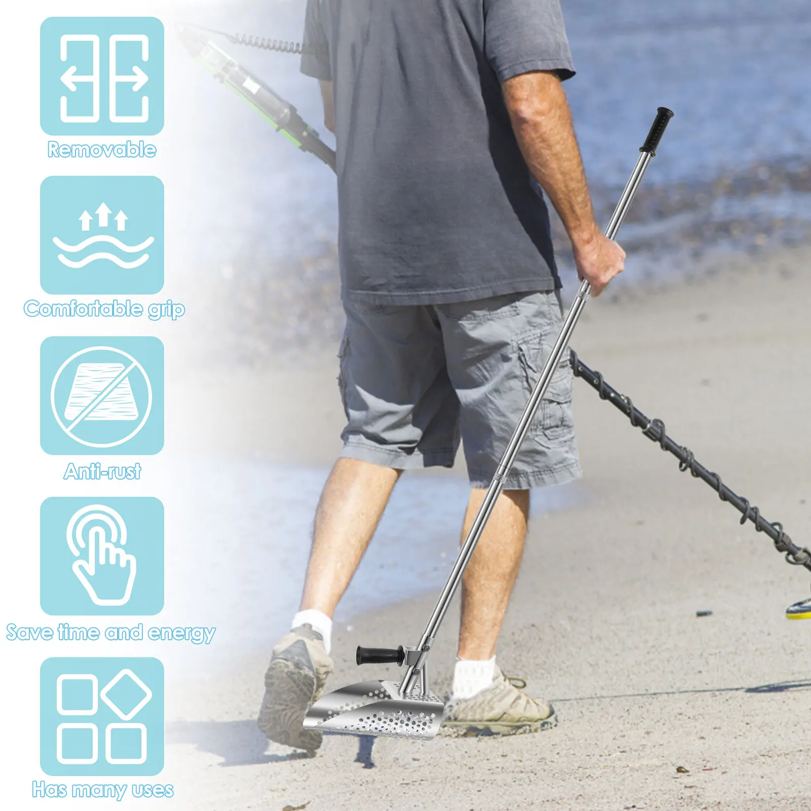 Metal Detecting Sand Scoop Heavy Duty Metal Detecting Shovel with Removable Long Handle 304 Stainless Steel Rustproof Beach