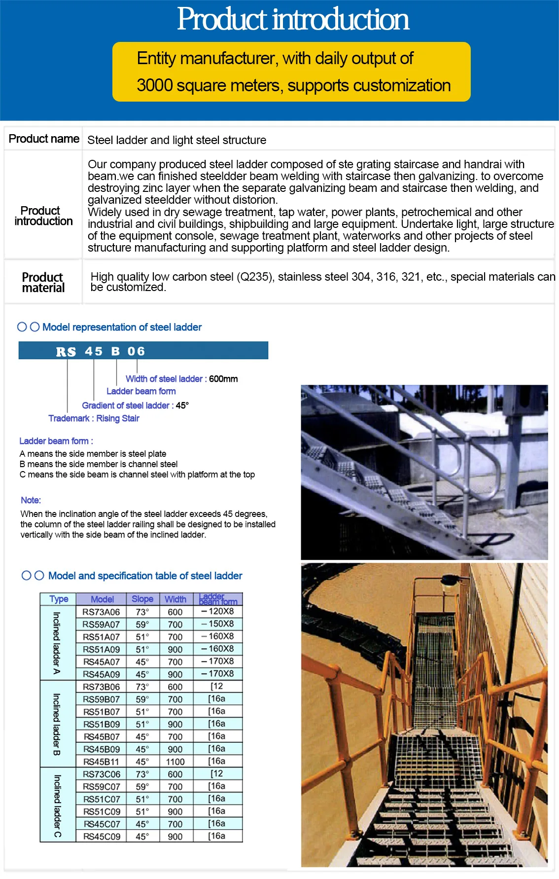 - Surface Treatment: hot dip galvanized of steel step grating ladder