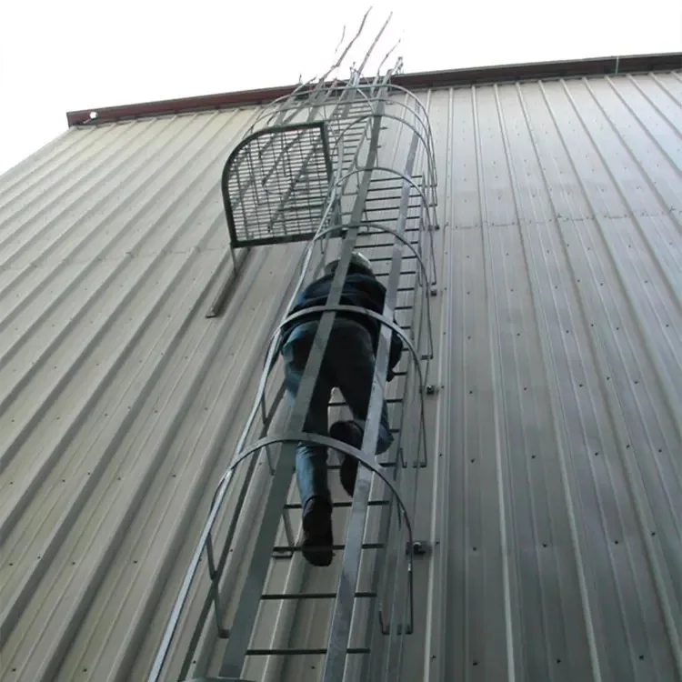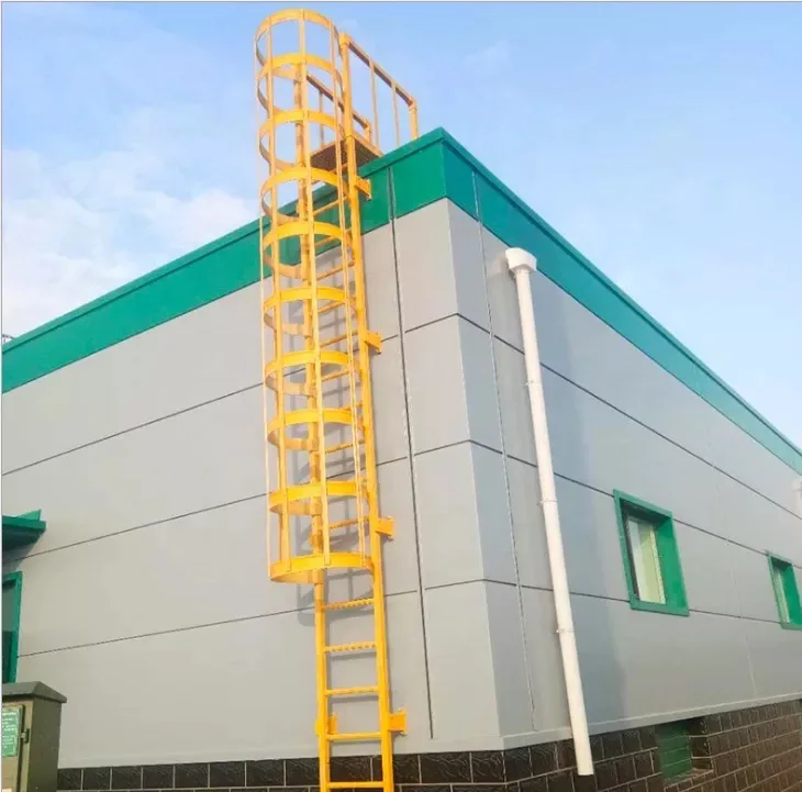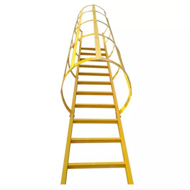 Outdoor Vertical Cage Ladders Steel Fiberglass FRP Material Angled Steel Cat Cage Step Ladder for Fire Escape Access