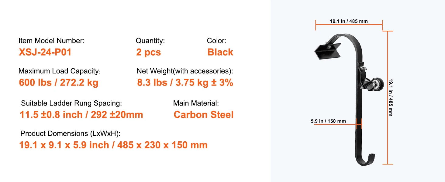 Wide Compatibility: Fits spacing between ladder rungs, compatible with various ladder types—wood, fiberglass, or aluminum. Made from premium steel with a 22.8'' extended design for robust durability and stable support.